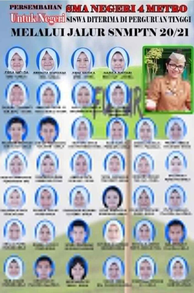 Onlinekoe.com, METRO – Pengumuman hasil Seleksi Nasional Masuk Perguruan Tinggi Negeri (SNMPTN) Tahun 2021, membawa kabar gembira Sekolah Menengah Atas Negeri (SMAN) 4 Kota Metro.