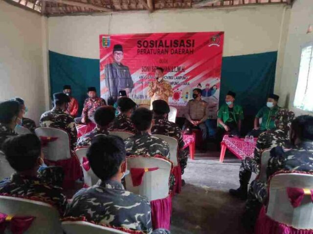 Onlinekoe.com, Waykanan – Anggota Dewan Perwakilan Rakyat Daerah (DPRD) Provinsi Lampung, dari Fraksi- PKB, Soni Setiawan ST. SH menggelar Sosialisasi Peraturan Daerah (Sosperda) Nomor 3 Tahun 2020 tentang adaptasi kebiasaan baru dalam pencegahan dan pengendalian Corona Virus Disease 2019, Sabtu (13/3/2021).