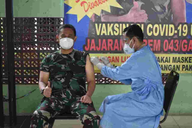 Untuk melaksanakan Suntik Vaksin ini, mudah – mudahan dengan Vaksin ini bisa menjaga antibodi kita dan menangkal dari covid 19, diketahui untuk Danrem 043/Gatam sendiri sudah melaksanakan suntik vaksin pada hari rabu kemarin.
