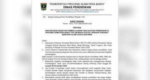 Pemprov Sumbar : Aktivitas Pembelajaran Tatap Muka Diliburkan Mulai 27-29 November...