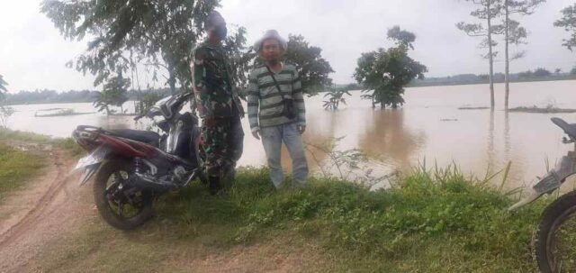 Beranda Lampung Selatan Babinsa Koramil 421-01 Katibung dengan Anggota Poktan, Melakukan Peninjauan Lokasi Banjir