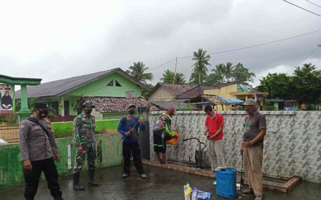Onlinekoe.com – Desa Mandala Sari Kecamatan Sragi Kabupaten Lamsel , telah di laksanakan kegiatan penyemprotan cairan disinfektan guna upaya melakukan pencegahan terhadap penularan virus covid 19.