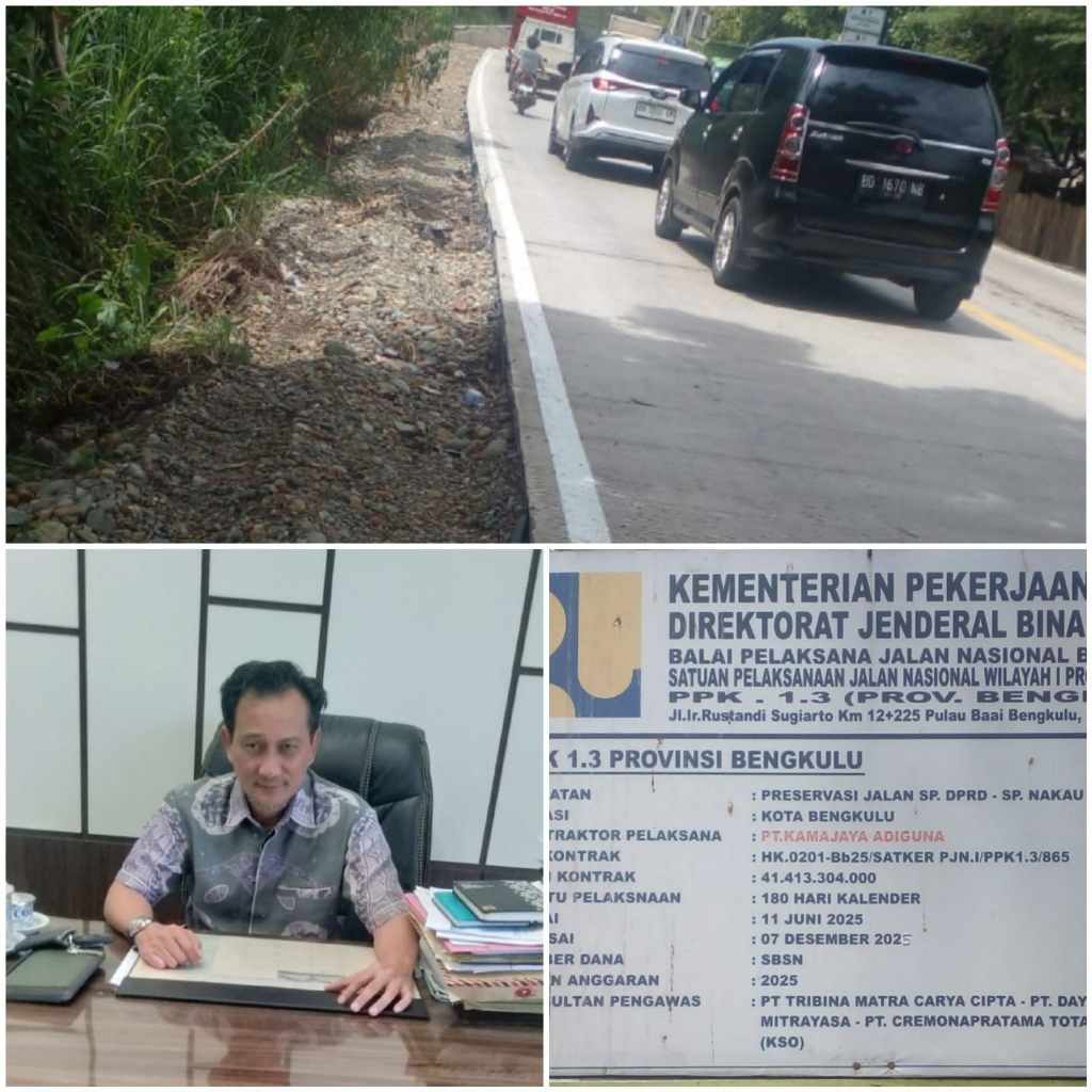 Pelaksana Jalan Nasional (PJN) Satuan Kerja (Satker) Wilayah satu (1) Tendi Hardianto, S.T., M.T, ketika ditemui media ini di kantornya mempertanyakan ada informasi pekerjaan jalan Rigit Beton bertulang antara simpang empat (4) Nakau – simpang tiga bentiring dalam kota Bengkulu sepanjang 4,2 km nilai kontrak Rp 41 Milliyar lebih dikerjakan PT Kamalajaya Adiguna, kontrak kerja habis 7 Desember 2025.
