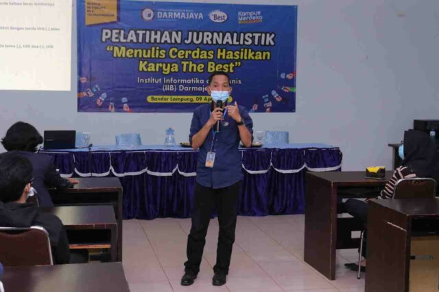 Pelatihan bertema “Menulis Cerdas Hasilkan Karya The Best” dengan pemateri Senior Staf Kehumasan IIB Darmajaya Lukman Hakim, SP., M.M., dan Staf Publikasi Aji Saktiyanto, S.I.Kom. Turut hadir membuka kegiatan Pelatihan Jurnalistik Wakil Rektor 3 Muprihan Thaib, S.Sos., M.M.