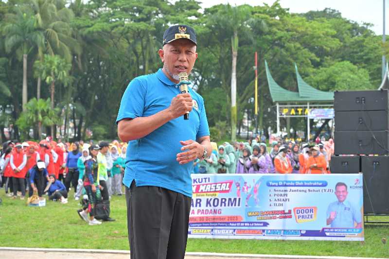 Onlinekoe.com | Padang – Gubernur Sumatra Barat Mahyeldi Ansharullah, membuka kegiatan senam massal yang digelar Komite Olahraga Rekreasi Masyarakat Indonesia (KORMI) Kota Padang di Lapangan Imam Bonjol, Padang, Sabtu (30/12/2023).
