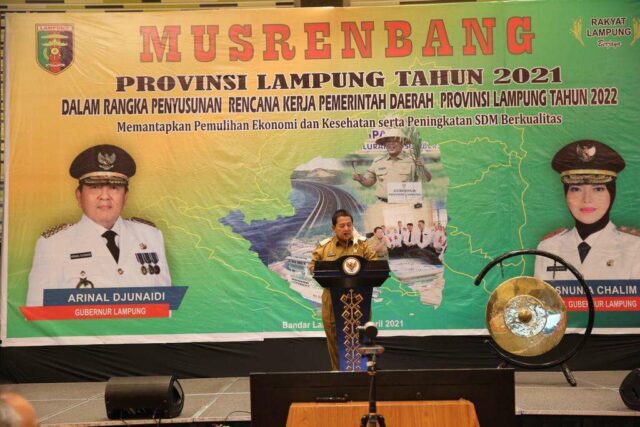Musrenbang ini, menurut Gubernur, dalam rangka penyusunan Rencana Kerja Pemerintah Daerah (RKPD) Provinsi Lampung Tahun 2022 dengan mengusung tema Memantapkan Ekonomi, Kesehatan, dan Peningkatan SDM Berkualitas.
