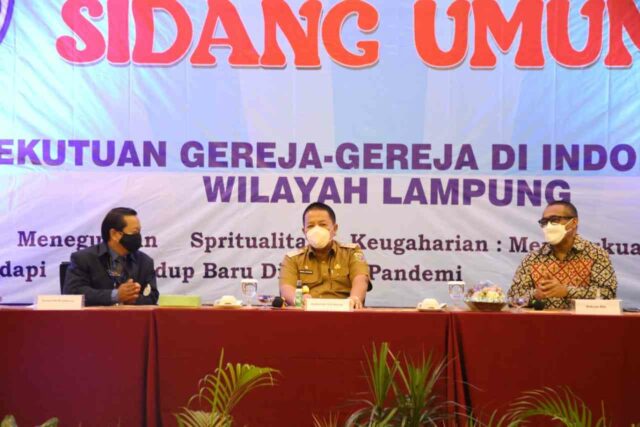 Hal tersebut disampaikan Gubernur Lampung Arinal Djunaidi saat membuka Sidang Umum VI PGI Wilayah Lampung bertemakan “Gereja Meneguhkan Spritualitas Keugahariaan Memperkuat Semangat Kebangsaan, Menghadapi Pola Hidup Baru di Tengah Pandemi”, yang dilaksanakan di Ballroom Swiss-Bell Hotel, Bandarlampung, Selasa (22/6/2021).