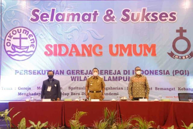 Onlinekoe.com, Bandar Lampung — Gubernur Arinal Djunaidi membuka Sidang Umum VI Persekutuan Gereja-Gereja Di Indonesia (PGI) Wilayah Lampung dengan tema “Gereja Meneguhkan Spritualitas Keugahariaan: Memperkuat Semangat Kebangsaan, Menghadapi Pola Hidup Baru di Tengah Pandemi” di Swisbell Hotel, Selasa (22/06).