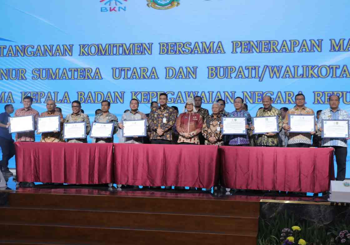 ‎Pada kegiatan tersebut, Gubernur Sumatera Utara Muhammad Bobby Afif Nasution bersama Kepala BKN RI serta para Bupati/Wali Kota se-Sumatera Utara melakukan penandatanganan komitmen bersama penerapan Manajemen Talenta ASN.