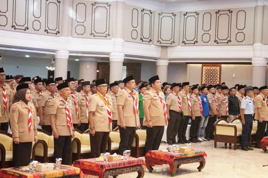 Onlinekoe.com|Asahan Sumut – Bupati Asahan Taufik Zainal Abidin Siregar SSos MSi menghadiri acara Pengukuhan dan Pelantikan Majelis Pembimbing Daerah (Mabida), Kwartir Daerah (Kwarda), dan Lembaga Pemeriksa Keuangan (LPK) Gerakan Pramuka Sumatera Utara periode 2025-2030 yang digelar di Aula Raja Inal Siregar, Kantor Gubernur Sumatera Utara, Sabtu (22/11/2025).