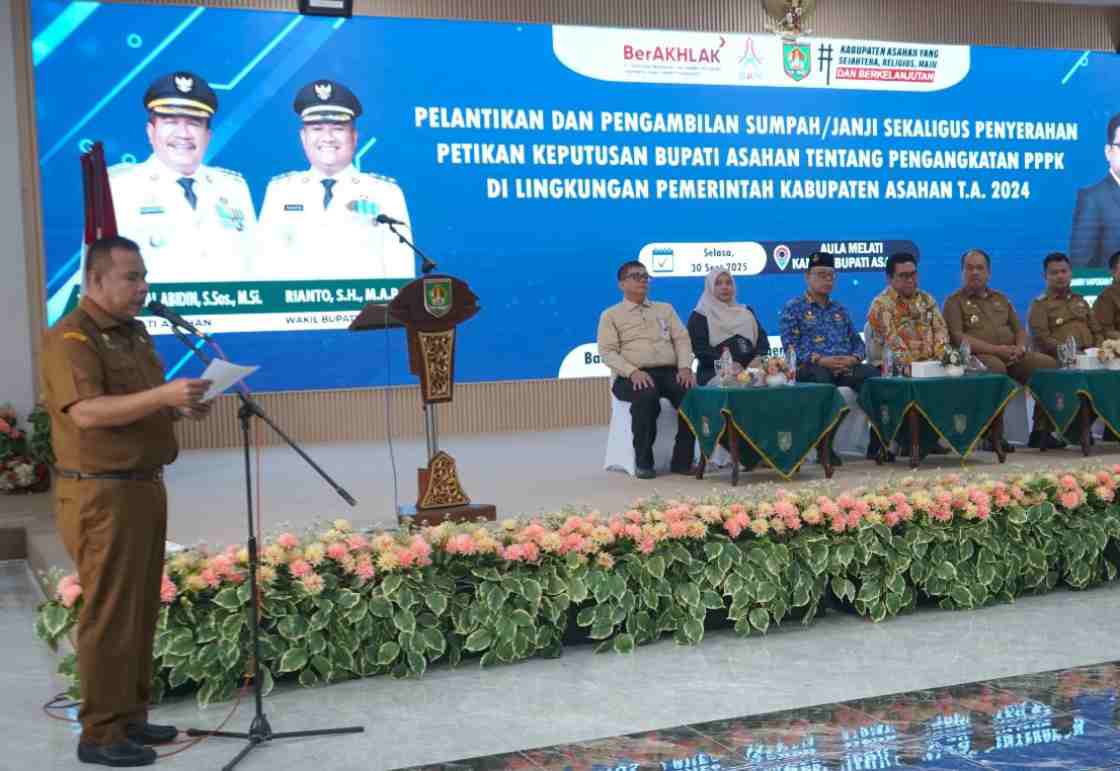 Pengangkatan PPPK ini didasarkan pada Keputusan Bupati Asahan Nomor 100.3.3.2-87-5.2 Tahun 2025, dengan formasi meliputi 239 tenaga guru, 100 tenaga kesehatan, dan 156 tenaga teknis. Kepala BKPSDM Asahan, Suherman Siregar, S.STP, MM, dalam laporannya menyampaikan bahwa proses seleksi hingga penetapan NIP dilakukan sesuai ketentuan dan bebas dari pungutan biaya. Kepala Kanreg VI BKN Medan, Janry Hup Simanungkalit, S.Si., M.Si, menegaskan bahwa penyerahan SK PPPK ini merupakan tindak lanjut arahan Presiden agar penetapan pegawai selesai paling lambat 1 Oktober 2025.