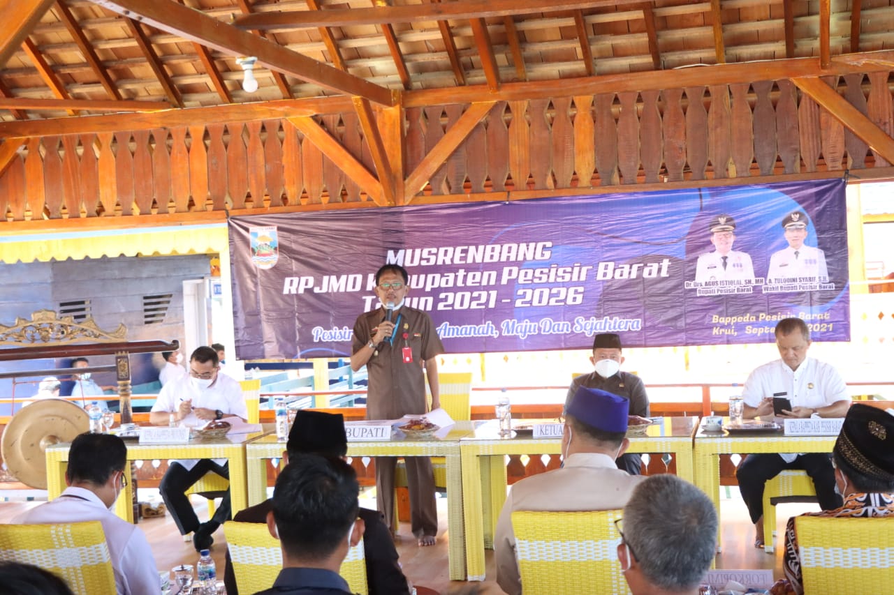 Dalam sambutannya Bupati menyampaikan dengan segala keterbatasan sumber daya yang ada, kita berikhtiar untuk dapat bersama-sama merencanakan arah pembangunan kabupaten pesisir barat tahun 2021-2026 yang dapat bersinergi dengan pemerintah pusat dan pemerintah provinsi lampung.