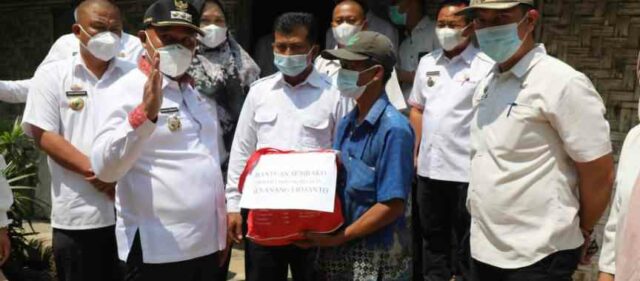 “Nanti Ibu Yani (Plt Kepala Dinas Perumahan dan Pemukiman) yang akan melaksanakan pembangunan rumahnya. Ini ada sedikit sembako untuk membantu kebutuhan sehari-hari. Mudah-mudahan bisa bermanfaat,” ujar Nanang kepada Sariman, warga Desa Sukadamai.