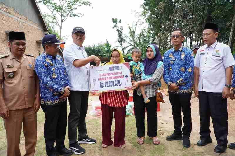 Sebagai bentuk komitmen terhadap pemulihan pasca musibah, usai menyerahkan bantuan, Bupati Novriwan Jaya juga secara simbolis melakukan peletakan batu pertama pada pondasi pembangunan kembali rumah milik Eko Sahri.