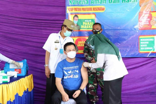 Dalam sambutannya Bupati Agus mengatakan pandemi covid-19 di Indonesia masih belum selesai, dampak pandemi sangatlah mengganggu sistem pemerintahan dan seluruh pelayanan publik juga berdampak pada pelemahan ekonomi yang mengakibatkan turunnya harga komoditas yang ada. “Atas permasalahan tersebut pemerintah telah mengambil kebijakan serta langkah-langkah untuk menuntaskan pandemi ini. Salah satu langkah yang dapat dilakukan adalah pemberian vaksinasi covid- 19 secara massal,” ungkap Agus.