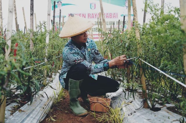 Pringsewu – Bupati Pringsewu Riyanto Pamungkas melakukan panen raya cabai Kelompok Tani Sumber Sari Utama, Pekon Enggalrejo, Kecamatan Adiluwih, Kamis (13/3/2025). Selain memetik cabai didampingi jajaran pemerintah daerah, Bupati Pringsewu juga berdialog dengan para petani dan menyerap berbagai masukan serta keluhan yang dihadapi para petani.