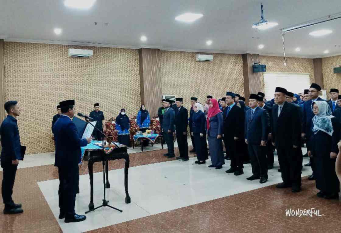 Pringsewu – Sebanyak 47 Pejabat Administrator dan Pejabat Pengawas di lingkungan Pemerintah Kabupaten Pringsewu dilantik dan diambil sumpah oleh Bupati Pringsewu Riyanto Pamungkas di Aula Utama Pemkab setempat, Jumat (17/10/2025).