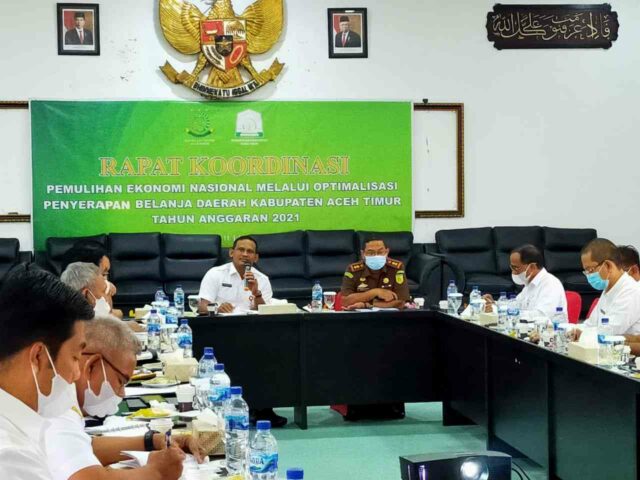 Rapat Koordinasi ini bertemakan tentang Pemulihan Ekonomi Nasional Melalui Optimalisasi Penyerapan Belanja Daerah Kabupaten Aceh Timur Tahun Anggaran 2021.