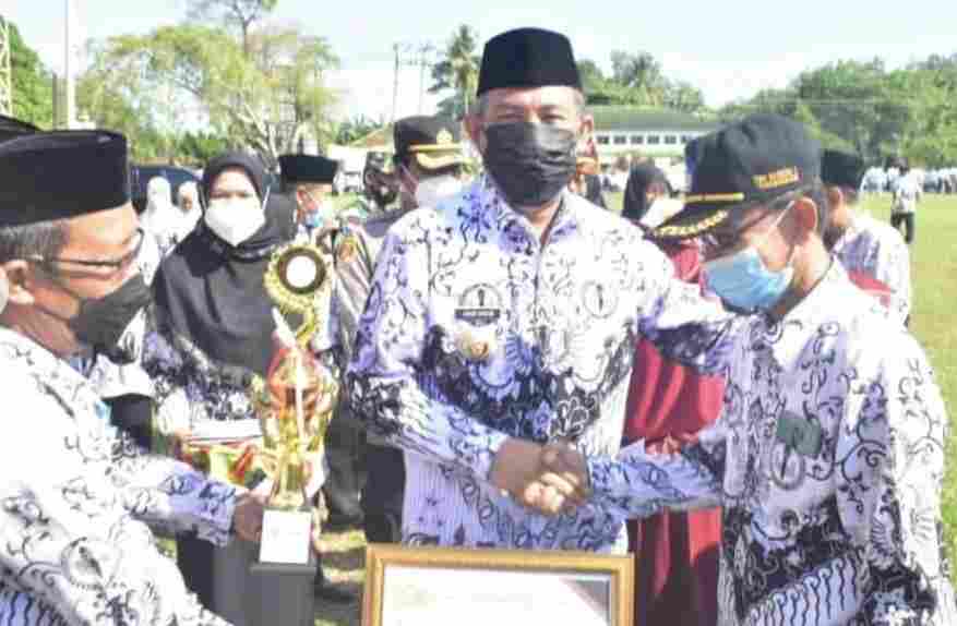 Bupati Tubaba Umar Ahmad dalam sambutannya berpesan untuk para guru tetap semangat dalam menjadikan anak didik yang berkarakter Tubaba.