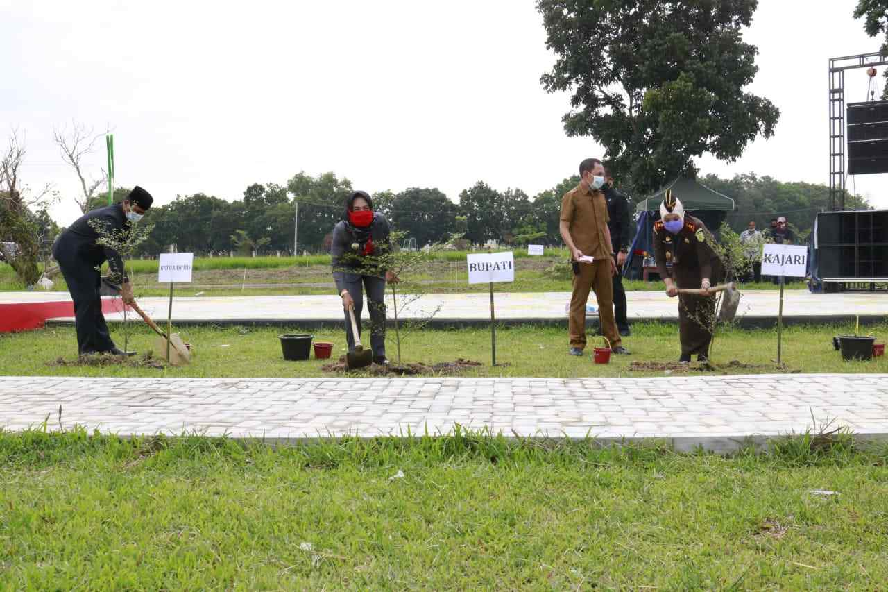 Bupati Tulangbawang Hj.Winarti saat melakukan Penanaman Pohon dilingkup BMW sport center
