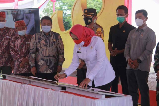 Onlinekoe.com, Tulang Bawang – Bupati Tulang Bawang Hj.Dr (Cand) Winarti.SE.,MH Hari Ini Meresmikan Beberapa Icon Wisata Seperti Tugu Garuda , Tugu BMW Simpang Penawar dan BMW Sport Center yang dilaksanakan secara virtual berlokasi Di Taman BMW Sport Center komplek Pemda Lama Kota Menggala, Rabu (13/01/2021)