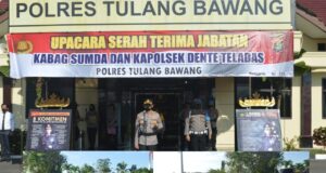 Kapolres Tulang Bawang Pimpin Upacara Sertijab Kabag Sumda dan Kapolsek Dente...
