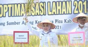 Bupati Hj. Winarti Panen RayabPadi Inbrida Impara