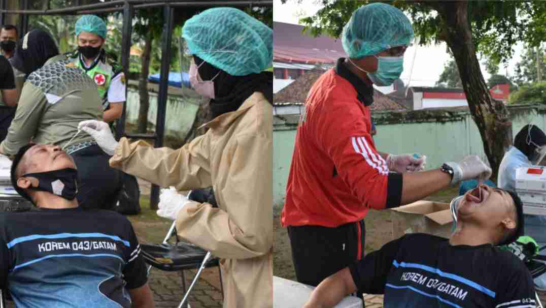 Onlinekoe.com | Bandar Lampung – Sebelum melaksanakan kegiatan olahraga, seluruh Personel Korem 043/Gatam dan Satdisjan melaksanakan Test Swab Antigen, bertempat di Lapangan Saburai, Enggal, Kota Bandar Lampung, Selasa (8/2/2022).