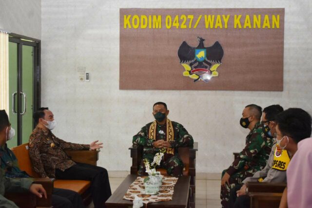 Onlinekoe.com, Way Kanan – Komandan Korem 043/Gatam Brigjen TNI Drajad Brima Yoga, S.I.P.,M.H. didampingi Ketua Persit KCK Koorcab Rem 043/Gatam Ny. Epie Drajad Brima Yoga berserta rombongan kunjungan kerja ke Kodim 0427/Way Kanan, Jumat (30/04/2021).