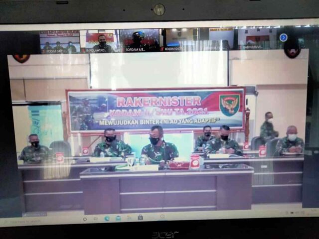 Dalam sambutan dan sekaligus arahannya , waaster KSAD mengatakan “mengawali sambutan ini , yang pertama tama saya sampaikan terlebih dahulu , ucapan terimakasih kepada seluruh peserta rapat teknis bidang Ter Kodam II/SWJ TA. 2021 , baik yang hadir maupun yang mengikuti secara virtual di ruang kerja masing masing , melalui metode ini merupakan salah satu bentuk kepekaan kita terhadap perkembangan situasi yang berlaku saat ini , tentang pandemi global covid – 19 yang telah membentuk satu kebiasaan atau mekanisme baru disemua lini kehidupan dalam menghadapi tantangan , kita semua harus mau dan mampu untuk adaptip guna mencapai tujuan yang ditetapkan”.