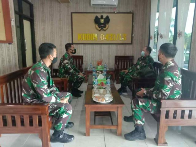 Onlinekoe.com – Dandim 0421/Lampung Selatan Letkol Inf Enrico S.N, S. Sos., M.Tr (Han) menyambut kedatangan Tim Asnis dari Pusintelad di Makodim 0421/Ls, Senin (15/03/21)