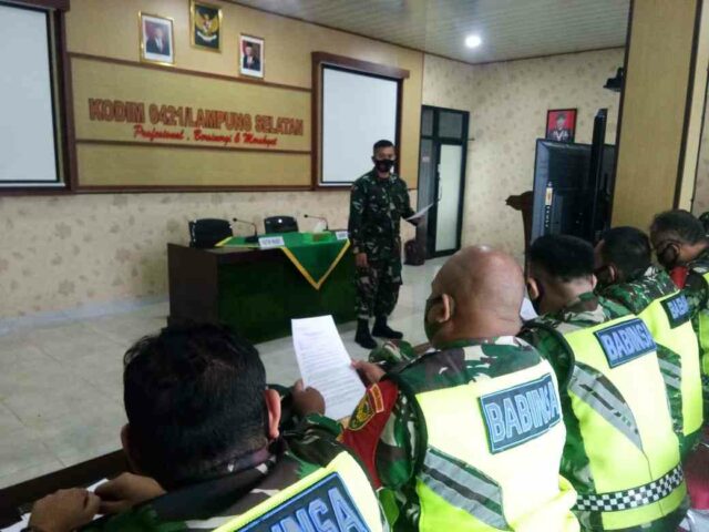 “Mengisi kuisioner dari Tim Wasev Sterad kepada para babinsa agar lebih memahami tugas pokoknya dilapangan , dan melakukan pemeriksaan produk staf teritorial satuan Kodim 0421/LS”.