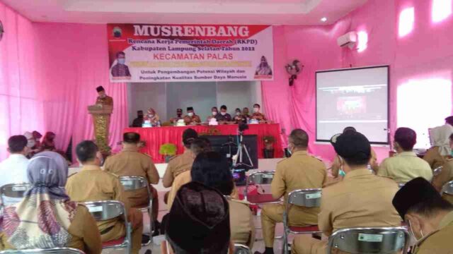 Staf Ahli Bupati Bidang Keuangan Lamsel , dalam sambutannya juga mengatakan “Untuk itu Pemerintah Daerah Kabupaten Lampung Selatan pada Tahun 2022 ini mengusung tema ”Musrenbang kecamatan palas , pemkab.lamsel akan lebih meningkatkan pada kwalitas pembangunan Infrastruktur untuk Pengembangan Potensi Wilayah dan Peningkatan Kwalitas SDM” dengan prioritas pembangunan , sehingga Peningkatan kwalitas pembangunan Infrastruktur Kabupaten dan Desa serta