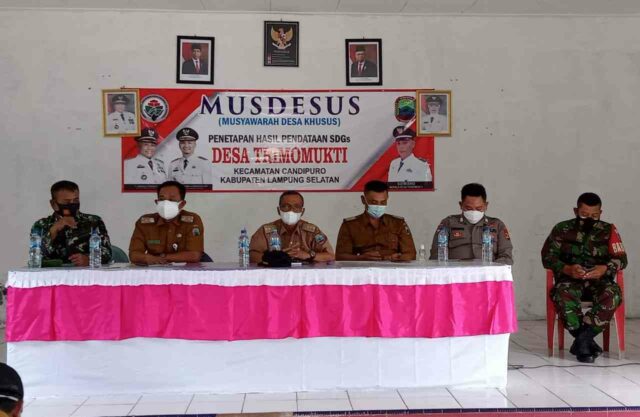 “Terima Kasih kepada Bapak dan ibu Semuanya yang bisa hadir di Balai Desa Trimomukti saat ini Dengan Situasi Pandemi Covid 19 yang bukan tambah Berkurang malah semakin Bertambah, kami Harapkan Kepada Kepala Desa seluruh Aparatur Desa dan Masyarakat semuanya bisa mematuhi Protokol Kesahatan guna Mencegah Pandemi Covid 19 tidak semakin Meluas.”Ujarnya