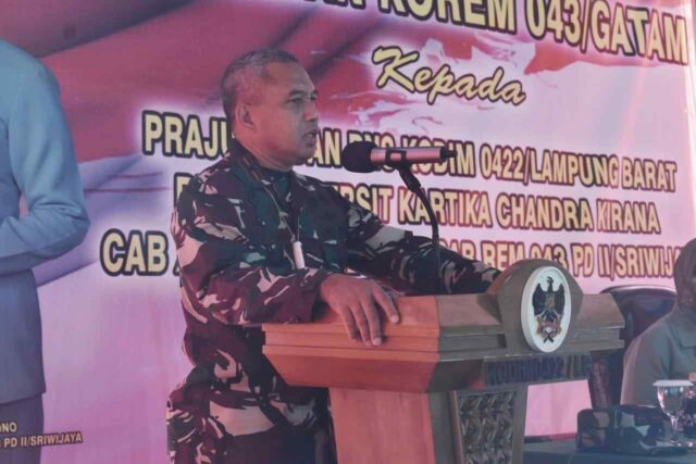 Onlinekoe.com, Liwa – Komandan Korem 043/Gatam Brigjen TNI Toto Jumariono,S.S.,M.I.Kom, didampingi Ketua Persit KCK Koorcab Rem 043 PD II/Swj Ny. Diana Toto Jumariono, beserta Kasilog Kasrem 043/Gatam, Letkol Inf Benny Suharto beserta Istri, dan Dandenpom II/3 Lampung Mayor Cpm Hanri Wira Kusuma,S.H.,M.Han.beserta Istri, Jum’at (19/03/2021) melaksanakan kunjungan kerja ke Kodim 0422/Lampung Barat.