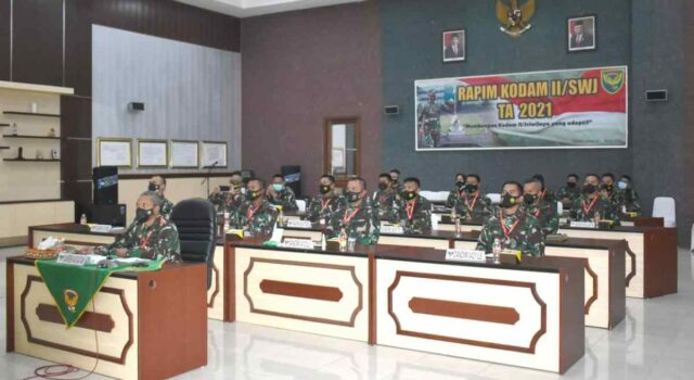 Rapat Pimpinan (Rapim) Kodam II/Swj merupakan kegiatan penting yang dilaksanakan pada awal tahun anggaran sebagai kelanjutan dari Rapim TNI AD serta merupakan bagian dari proses dalam tahapan perencanaan. Demikian halnya pada Tahun 2021 ini, untuk mengawali pelaksanaan Program dan Anggaran Kodam II/Swj TA 2021 maka Kodam II/Swj menyelenggarakan kegiatan Rapim Kodam II/Swj TA 2021.