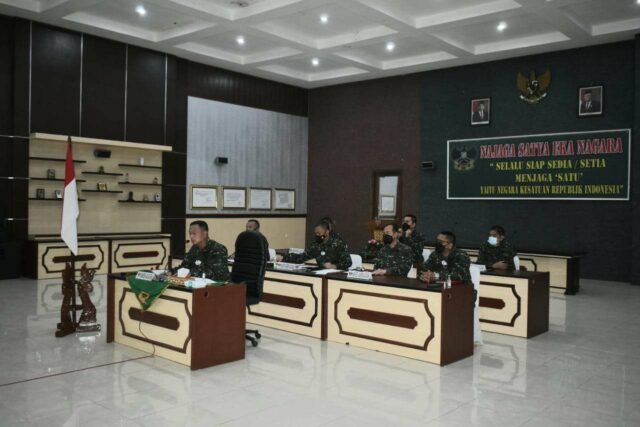 Onlinekoe.com – Bertempat di Aula Ahmad Yani Makorem 043/Gatam. Danrem 043/Gatam Brigjen TNI Drajad Brima Yoga, S.I.P., M.H. ikuti kegiatan Virtual Teleconference (Vicon) kegiatan Rakor Evaluasi Pemberlakuan Pembatasan Kegiatan Masyarakat (PPKM) Mikro dan kegiatan dalam menghadapi Lebaran tahun 2021 yang dipimpin oleh Pangdam II/Sriwijaya Mayjen TNI Agus Suhardi,Senin 26/4/2021.