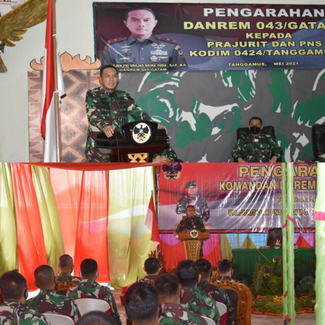 Danrem 043/Gatam menyampaikan agar para Prajurit untuk lebih meningkatkan disiplin, kurangi pelanggaran sekecil apapun jaga Soliditas dan Solidaritas, hindari perselisihan TNI dan Polri, TNI dan Masyarakat dengan cara melakukan kegiatan bersama yang positif, sehingga tercipta hubungan TNI, Polri dan Masyarakat yang harmonis. Yang paling utama harus jaga nama baik satuan.