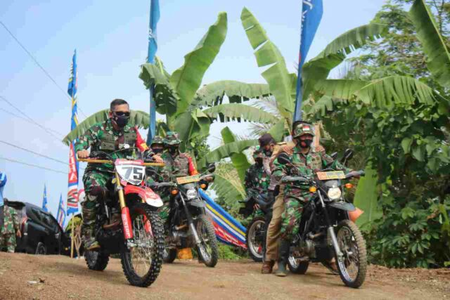 Banjarnegara – Komandan Korem 071/Wijayakusuma Kolonel Inf Dwi Lagan, S.I.P., di dampingi Dandim 0704/Banjarnegara Letkol Arh Sujeidi Faisal, S.T., M.Han untuk ketiga kalinya naik Trail meninjau lokasi TMMD Reg 111 Kebutuhjurang Kecamatan Pagedongan Kabupaten Banjarnegara. Selasa (29/6/21).