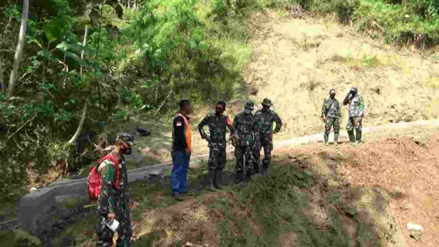 Banjarnegara – Dansatgas TMMD Reguler 0704/Banjarnegara Letkol Arh Sujeidi Faisal, S.T., M.Han di H +9 di dampingi Pasiter Kodim 0704/Banjarnegara dan Kades Kebutuhjurang Sujarwo tinjau lokasi TMMD desa Kebutuhjurang Kecamatan Pagedongan Kabupaten Banjarnegara. Jumat (25/6/21).