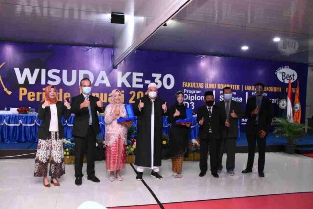 Kemudian, terbaik Fakultas Ekonomi dan Bisnis (FEB) diraih oleh Jevina Aprilianti dari Prodi Akuntansi dengan IPK 3,88 dan juga menjadi lulusan terbaik tingkat Prodi Akuntansi. Lulusan terbaik tingkat prodi lainnya yakni Sistem Informasi diraih Winndy Lettalis Sinta Balaki Gea dengan IPK 3,58; Sistem Komputer diraih Lindar Nurdianto dengan IPK 3,26; dan Program Diploma 3 diraih oleh Afifa Mayang Lestari dari Manajemen Informatika dengan IPK 3,66.