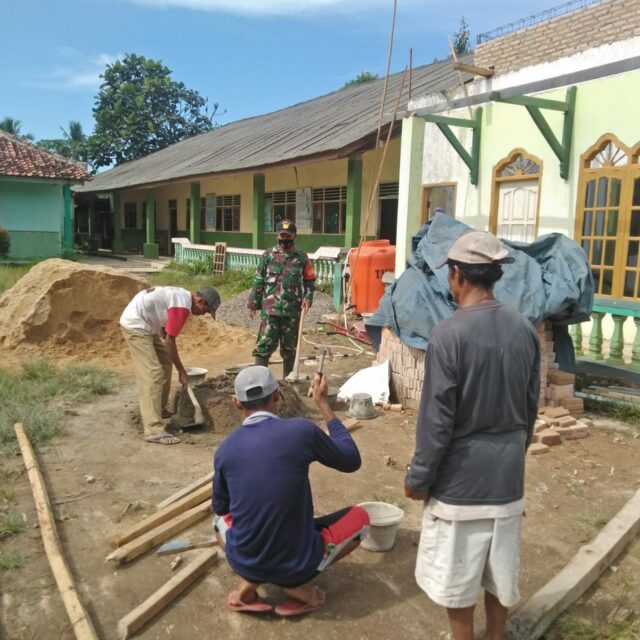 Dalam pengerjaannya babinsa serma marhadan anggota koramil 421-07/SDM , juga ikut andil sekaligus memimpin jalannya pelaksanaan gotong royong , agar kondisi bangunan musholla bisa lebih baik lagi seperti sedia kala , yang sama sama dikerjakan pada kamis (11/02/2021).