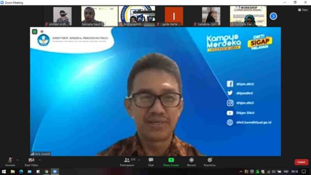 Workshop dibuka langsung Direktur Pembelajaran dan Kemahasiswaan Direktorat Jenderal Pendidikan Tinggi Kementerian Pendidikan dan Kebudayaan (Ditjen Dikti Kemendikbud) RI Prof. Aris Junaidi, Ph.D.