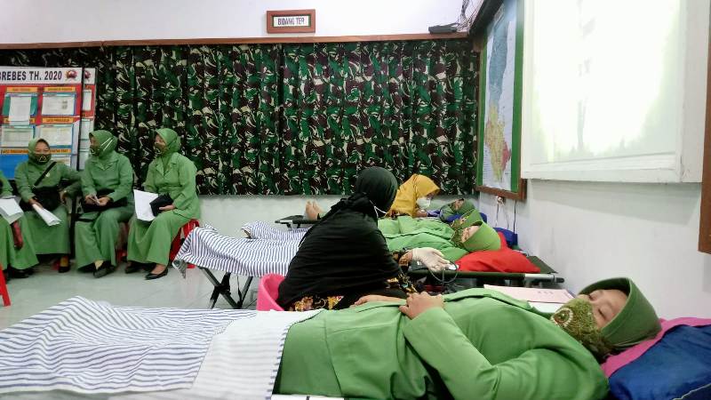 Onlinekoe | Brebes – Keluarga Besar Tentara (KBT) Kabupaten Brebes, Jawa Tengah, menggelar donor darah untuk memperingati HUT Korem ke-60 tahun 2021. Kamis (26/8/2021).