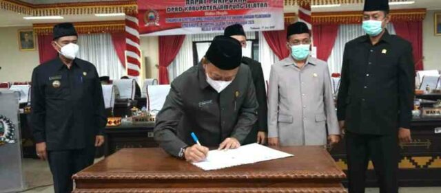 Sementara, Ketua DPRD Hendry Rosyadi, SH, MH didampingi Wakil Ketua I Agus Sartono, Wakil Ketua II Agus Sutanto, dan Wakil Ketua III Waris Basuki, menandatangani kesepakatan bersama tersebut dari ruang sidang gedung DPRD setempat.