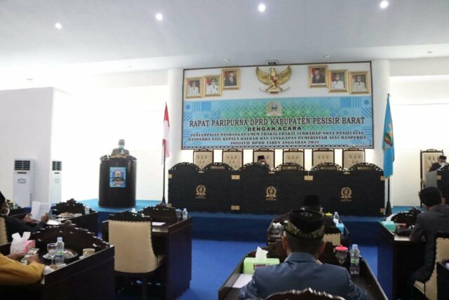Pandangan Umum fraksi-fraksi terhadap nota penjelasan ranperda usul kepala daerah dan tanggapan pemerintah atas ranperda inisiatif DPRD kabupaten pesisir barat tahun 2021, gedung DPRD kab. Pesisir Barat, (selasa, 9/2/2021).