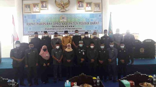 “kami atas nama Pimpinan DPRD dan Anggota DPRD Mengucapkan terimakasih dan apresiasi setinggi-tingginya kepada Bupati dan Wakil bupati Pesisir Barat atas pengabdian dan kerjasamanya selama mengemban amanah sebagai Bupati dan Wakil bupati Pesisir Barat”.Terang Ketua DPRD Pesibar, Nazrul Arif. (Holil).