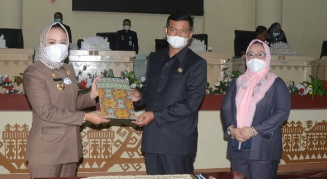 acara berlanjut penanda tanganan surat keputusan persetujuan atas rekomendasi DPR terhadap laporan keterangan pertanggung jawaban akhir tahun anggaran 2020 oleh Ketua DPRD Kabupaten Tulang Bawang, Sopi’i dilanjutkan dengan penyerahan rekomendasi kepada Bupati disaksikan oleh peserta paripurna.**