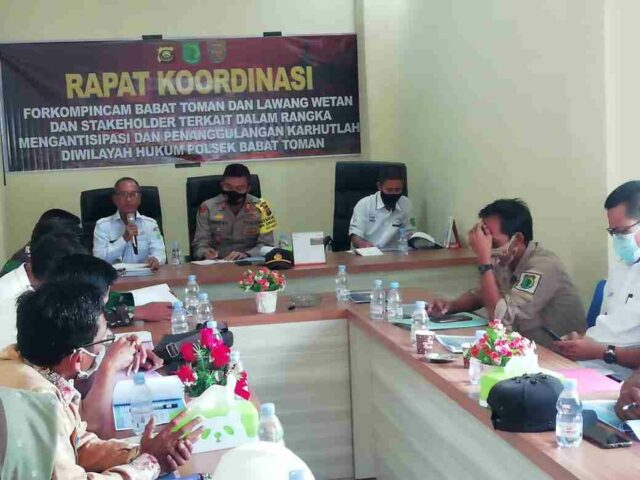 Onlinekoe.com, Muba – Forkopimcam dan Stakeholder terkait gelar rapat koordinasi dalam rangka mengantisipasi dan penanggulangan Karhutlah diwilayah hukum Polsek Babat Toman, Kegiatan tersebut bertempat di aula KUD sejahtera babat Toman,Kamis(04/03/20).
