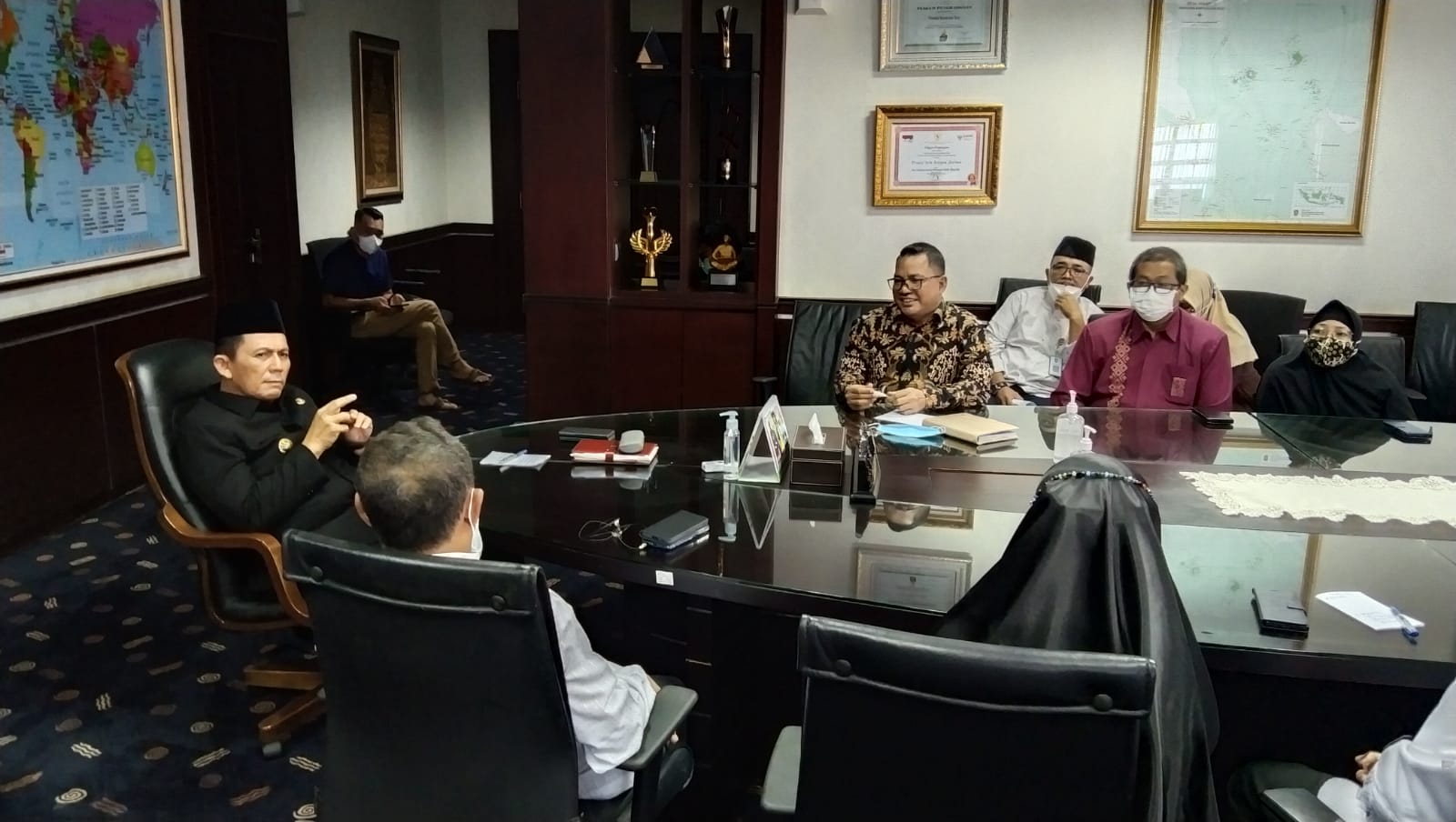 Onlinekoe.com | Tanjungpinang – Gubernur Kepulauan Riau H. Ansar Ahmad menerima audiensi Ketua Komisi Pemilihan Umum (KPU) Sriwati dan jajarannya, serta Ketua Badan Pengawas Pemilihan Umum (Bawaslu) Said Abdullah Dahlawi dan jajarannya di Ruang Kerja Gubernur di Lantai 4, Kantor Gubernur, Dompak, Tanjungpinang, Selasa (12/4/2022).